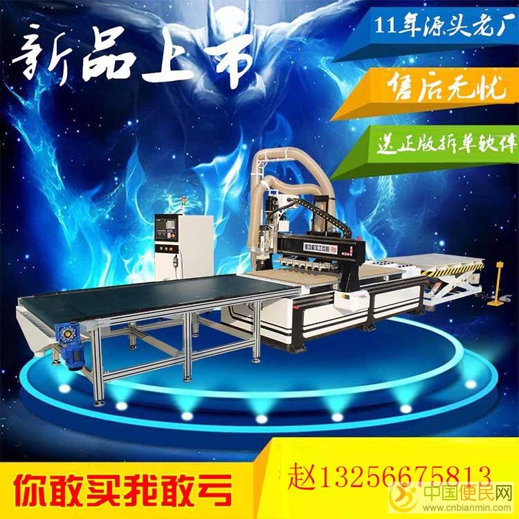 产品详情1,提高板材利用率:开料机用铣刀开料,可任意掉转方向,可切割异形,推台锯开料必须一刀到底,板材利用率低,配合自行排版拆单软件自动优化,平均每张板利用率2.7-2.8平方c+n+b+i+a+n+m+i+n+c+o+m。2,节省人工。 3,功能强大:开料机同样也可以雕刻浮雕,也可以切割镂空,开料机和雕刻机除了配置不同结构也不同,开料机要的是速度快、精度高、长时间切割性能稳定,切割出的板材没有锯齿,三聚氰胺不崩边、切割面光滑无毛刺,切割板材不易断刀等特点原文www.cnbianmin.com。4,降低劳动强度。 5,效率高.6,改善工作环境c~n~b~i~a~n~m~i~n~c~o~m。7,机器精确度高。8,操作简单:本机器为傻瓜式操作,全部计算为计算机计算,零错误,零故障率c_n_b_i_a_n_m_i_n_c_o_m。
